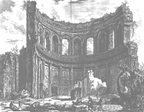 An der Via Tiburtina nahm er den Rundbau des Plautiergrabes mit seinen großen Ehrentafeln auf und steigerte die Größe des Todesmonumentes durch die Verwendung divergierender Maße ins Übermenschliche. Am meisten zog ihn aber das Gelände des Landsitzes an, welchen der Kaiser Hadrian gegen Ende seines Lebens nach eigenen Entwürfen unweit von Tivoli bauen ließ.